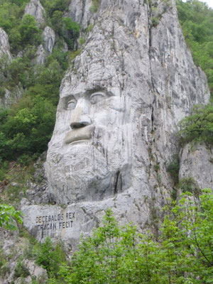 Das erste Mal bin ich dem König der Daker (85 - 106 n. Chr.) auf unserer Donaufahrt >Recherchereisen in Rumänien - Teil 1< begegnet. Er hat uns in der Cazanenge vor dem Eisernen Tor empfangen - allerdings in einiger Entfernung, als Teil des Almaj-Gebirges.