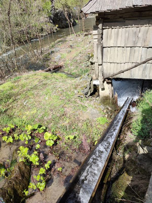 Natürlich sind die Wassermühlen von Rudaria ein touristisches Ziel. An dem Tag, als wir dort sind, sind mit uns viele Familien unterwegs, um die Mühlen in Betrieb zu sehen. Gerne führen die Betreiber ihre Mühle vor, verkaufen säckeweise frisch gemahlenes Maismehl und andere selbst hergestellte Produkte wie Schnaps oder Selbstgehäkeltes.